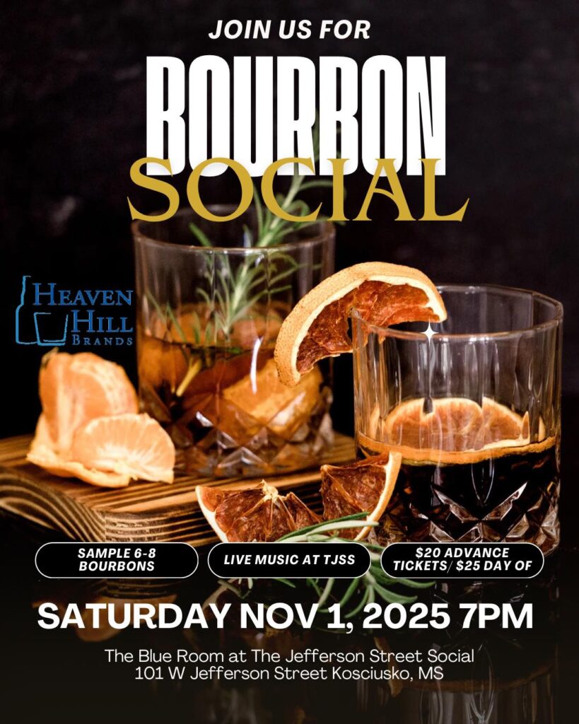 The Jefferson Street Social is holding a Bourbon Social that will be hosted in The Blue Room on Saturday, November 1, at 7 p.m. Participants will have the opportunity to sample 6-8 bourbons from Heaven Hill Brands. It will be a ticketed event and advance ticket purchase is encouraged in order to have a head-count of how many participants to expect. Tickets are $20 if purchased in advance and $25 if purchased day-of. The Blue Room is next door to The Jefferson Street Social and participants will receive a wrist band and be able to go back and forth between the two rooms. Charcuterie will be available in The Blue Room for ticket holders and some swag provided by Heaven Hill will be given away. Live music will be provided by Lauren Lindsay. “We really look forward to seeing everybody there and to experience and take advantage of these unique opportunities here in Kosciusko,” said Marc Sims of The Jefferson Street Social.